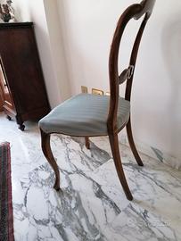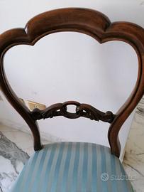 n.2 deliziose sedie in noce biondo epoca fine '800 con delicato intreccio di nodi finemente lavorati,integre.Il colore del legno è più delicato e caldo di come appare nella foto.