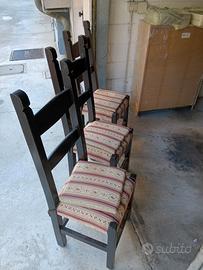 Vendo tre sedie di legno con imbottitura rifinita di tessuto. Ben curate e mantenute nel tempo, ottimi elementi di antiquariato restaurato. Sempre tenute in casa a contornare un tavolo e una panca antichi ormai assenti.