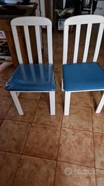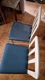 SEDIE LEGNO BIANCHE TESSUTO AZZURRO