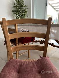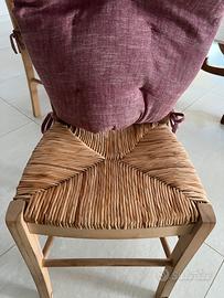 Vendo 4 sedie in legno e paglia con cuscini, in buone condizioni, legno naturale.