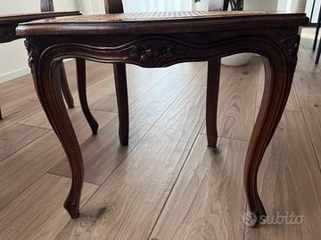 Anni 70/80, set di 6 sedie in legno di ciliegio intagliate a mano. Struttura solida e resistente.