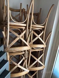 vendo stock di 40pz sedie di legno con seduta in rattan, usate.