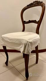 Vendo in blocco sei sedie in legno con coprisedia panna sfoderabile.