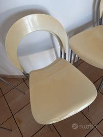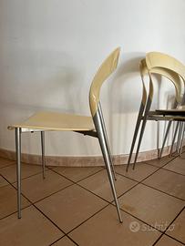 Vendesi n.6 sedie, seduta e schienale in plastica bianca dura e struttura in metallo color alluminio. Integre r resistenti. Da segnalare che il bianco delle plastiche è visibilmente ingiallito e presenta aloni e sfumature. Si vendono in blocco. Il prezzo é riferito a tutte e sei. No spedizioni