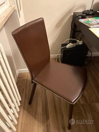 Venda 4 sedie in cuoio martone fella Calligaris in dicrete condizioni….una presenta un difetto sul retro cone da foto