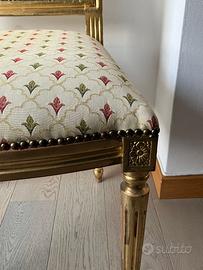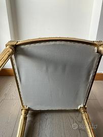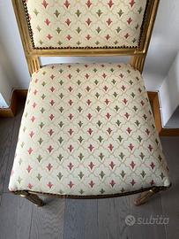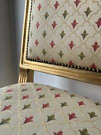 Sei sedie imbottite in stile Luigi XVI legno laccato oro e tessuto con gigli Dorate in stile, ottimo stato. Scrivere se interessati prezzo da concordare