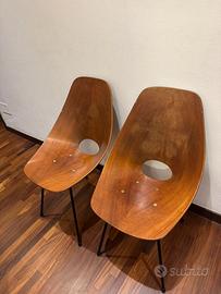 N. 2 sedie medea originali da lucidare/restaurare. Nelle foto sono indicati i punti danneggiati. Prezzo cadauna