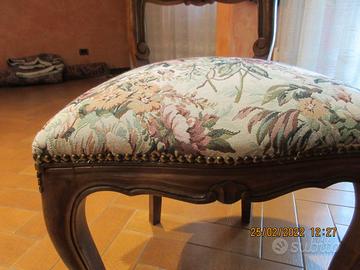 set n. 6 sedie noce intarsiate a mano stile Luigi Filippo - schienale imbottito - rifinitura con borchie – recente rifacimento tessuto e imbottitura - In perfetto stato come nuovo. Scambio a mano senza spedizione / No perditempo