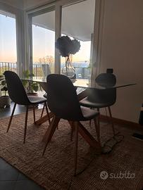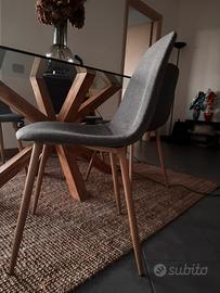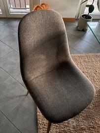 4 Sedie in tessuto morbido, grigio scuro con gambe chiare, in ottimo stato nessuna macchia o segni di usura