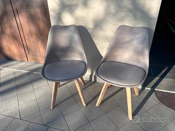 2 sedie con schienale in plastica e seduta in ecopelle color tortora
