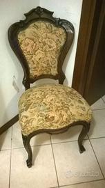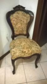 Coppia di sedie da soggiorni, camera da letto o ingresso. Eleganti, in stile modernariato (vintage). Anni '50, ripercorrono stile antico. In ottime condizioni. Se acquistate in copia € 100,00 totale. Singolarmente € 70,00 cadauna.