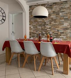 Vendo 8 sedie con seduta in ecopelle bianca e gambe in rovere. Pagate originariamente 200 euro a sedia. Vendo per cambio arredamento. Vendo a 600 euro, solo ritiro a mano, no perditempo.