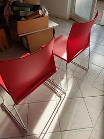 Vendo 2 sedie in plastica rossa e acciaio, usate pochissimo, praticamente nuove.