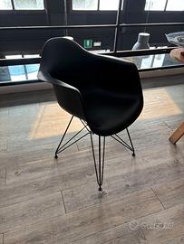 Sedie nere stile Vitra, dal design moderno e minimal con un tocco vintage industrial. Ideali per cucina, sala da pranzo, ufficio o locale. In buono stato, robuste e comode. Prezzo: €20 cad. – disponibili 10 pezzi.