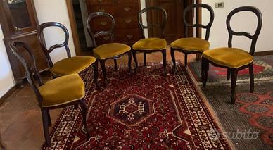 Sei (6) sedie noce scuro ptimi 900 in stile Luigi Filippo ( metay cix sec) con seduta in velluto ocra Vrnfita in blocvo no sfuse 60x4=240