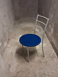 vendo N.8 sedie in ferro di colore grigio con seduta in panno blu. Non spedizione