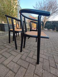4 sedie nere con seduta in paglia di Vienna