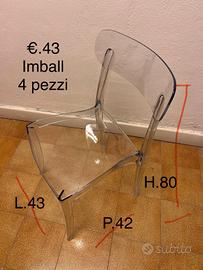 Straordinarie sedie trasparenti impilabili in polipropilene elegantissime comode e di grande design.
