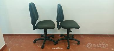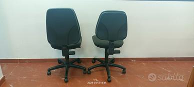 2 sedie operative, pratiche, dotate di tutte le moderne soluzioni per un corretto adattamento ergonomico. Seduta cm. 47 x 46 sedile da terra cm. 54, schienale da terra 104. Inoltre, Seduta cm. 48 x 46 sedile da terra cm 54, schienale da terra 100. Sistema di elevazione a gas che consente di regolare il sedile da cm. 42 a cm. 54 da terra. Seduta girevole. Meccanismo schienale regolabile. Euro 25 cadauna. Occasionissima!!!