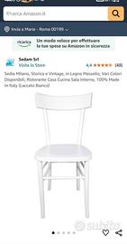 Vendo 4 sedie osteria Milano nuove laccate bianche (acquistate nel 2023 pagate 78 euro a sedia, vedi screenshot) 45P (incluso appoggio schienale) x 43l (schienale, 39P seduta)x 83H cm