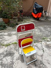 4 sedie Pantone rosse richiudibili in ottimo stato + 1 sedia gialla richiudibile da bambino