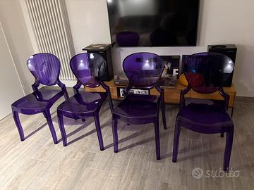 Vendo 4 sedie Pedrali modello Queen, in policarbonato colore viola. Presentano dei difetti come da foto