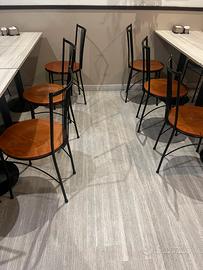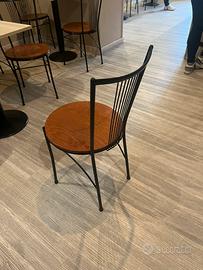 Num. 24 Sedie con struttura in ferro e seduta in legno, prezzo cad. € 12,00