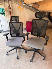 Vendo due sedie scrivania, ufficio in discreta condizione. Le sedie sono comode e hanno lo schienale reclinabile e regolabile. Vendo causa inutilizzo. Una sedia a 50 euro. Entrambe a 80 euro.