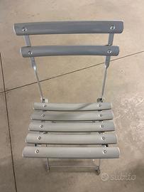 Emu Sedia Pieghevole (due) Arc en Cien in acciaio pre-zincato verniciato a fuoco con trattamento anti graffio/piedini in gomma antiscivolo : due sedie di colore diverso: una colore grigio nuvola l’altra di colore ferro antico Prezzo complessivo x i due articoli: €50.00 (NON spedibile)