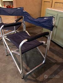 Vendo 4 sedie regista pieghevoli Bertoni in alluminio come da foto. Le sedie hanno la fascia dello schienale rovinata. No spedizione , ritiro a Desio (Mb)