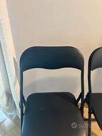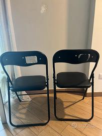 Vendo due sedie pieghevoli nere. Usate. I segni di usura mostrare nelle foto.