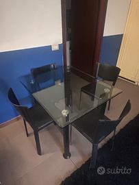 Set 4 sedie nere comodissime in ottime condizioni. Tavolo in vetro in perfette condizioni per 4 persone. Prezzo trattabile Informazioni su whatsapp ( no chiamate) No perdi tempo