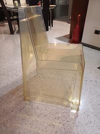 Quattro sedie in plastica trasparente impilabili. Forma moderna e particolare. 50 ero tutte e quattro. Senza danneggiamenti.
