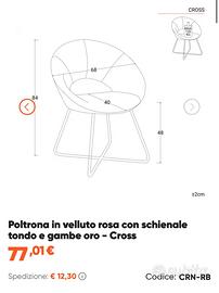 Vendo set di tre sedie/poltroncine Deghi modello Cross in velluto rosa e gambe oro, NUOVE ancora imballate nello scatolone originale, mai usate, acquistate per errore (variazione del progetto di ristrutturazione). Solo ritiro in loco zona Pavia, Milano, Piacenza.