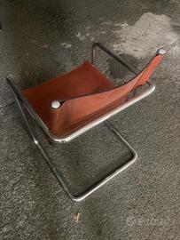 Vendesi 4 sedie poltrone con braccioli vintage di Mart Stam e Marcel Breuer by MATTEO GRASSI anni 70 buone condizioni e ben conservate da; sedie a sbalzo in acciaio tubolare cromato e in pelle marrone color cognac da ufficio o sala pranzo.