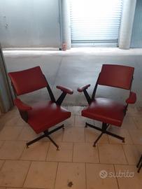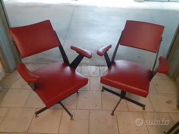 Coppia di poltrone industrial design in pelle anni '50/60 da barbiere/atelier/officina/ufficio. Restaurate.
