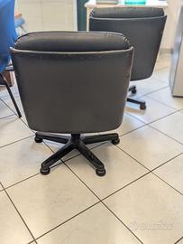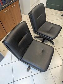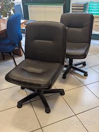 Coppia di sedie da Ufficio girevoli e con ruote, in similpelle colore nero, meccanismi funzionanti.