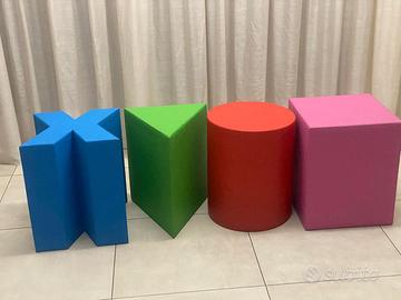 Vendo 4 pouf artigianali ognuno a forma di un simbolo e colore della play station. Adatti anche per uso esterno.