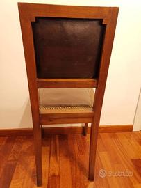 4 sedie in noce massello con seduta in pelle e schienale in cuoio lavorato