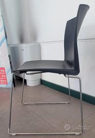 Sedie da interno/esterno con seduta e schienale in PVC nero e struttura in tondino metallico cromato. Disponibili 12, usate per ufficio di rappresentanza.