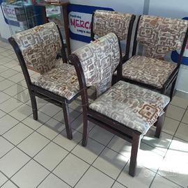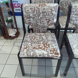 SEDIE PZ. 4 LEGNO SCURO TESSUTO BEIGE MARRONCINO FANTASIA ASTRATTO