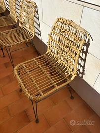 Vendo sedie in rattan da giardino con piedi in ferro. Condizioni discrete (segnalo fasce da sistemare)