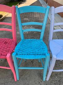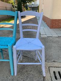 Sedie in legno con seduta impagliata dipinte a colori vendesi in blocco con ritiro da parte dell'acquirente