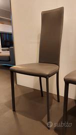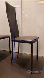 n. 4 sedie RIFLESSI modello Luna. Telaio in acciaio, rivestimento similpelle alta qualità, seduta imbottita, schienale alto sagomato. Le misure sono disponibili in foto. Colore Grigio Urban. Contattatemi solo se interessati. Non spedisco. Visionabili zona Sassi Torino