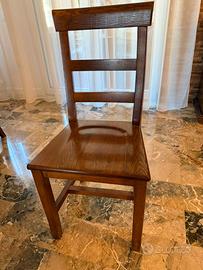Vendo sedia in legno massello dal design classico, solida e confortevole. La struttura è stabile e ben rifinita, con schienale alto a stecche orizzontali che garantisce un ottimo supporto. Il sedile è ampio e comodo, ideale sia per la cucina che per la sala da pranzo.