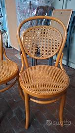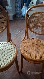 Vendo 4 sedie in legno curvato, con seduta e schienale in paglia di Vienna. Due non sono integre nello schienale, come da foto.