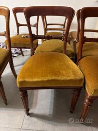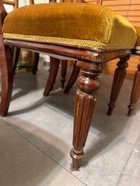 Vendo quattro sedie in legno e velluto color ocra in ottimo stato non so dire bene di che periodo, ma credo fine ottocento inglese.