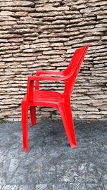 Vendo 8 sedie/poltroncine in plastica rossa con braccioli, impilabili, in ottime condizioni.