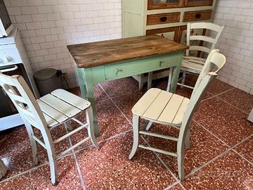 Tre sedie rustiche in blocco. Larghe 40 cm x 40 cm, alte 88 cm allo schienale.