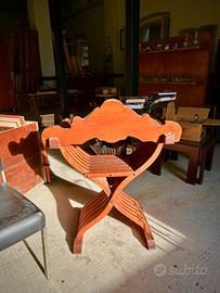 Vendo coppia di sedie rinascimentali Savonarola in legno di noce chiaro intagliato. 1980 Dimensioni: Altezza: 86 cm (33,86 in)Larghezza: 66 cm (27 in)Profondità: 50 cm (19,69 in)Altezza della seduta: 48 cm (18,9 in) Euro 50 cadauna Di Riciclo Modernariato Vintage.